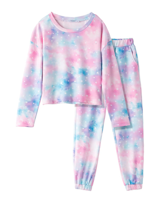 Arshiner Girls Long Sleeve Tie Dye Outfits Sweatsuits Set Cute Pullover Hoodies Sweatshirts Jogger Sweatpants Outfit